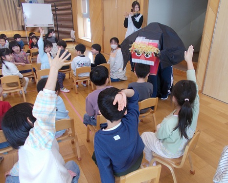 「頭をかんでもらうと元気に過ごすことができるよ」と聞くと「ぼくも!」「わたしも!」と元気に手を挙げ会場は大盛り上がりでした。