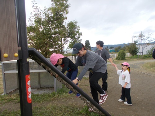 たくさんの木の実を見つけて袋いっぱいに夢中になって拾い集め自然の中で季節の変化を感じながら楽しい時間を過ごしました。