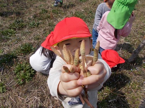 散歩先で見つけた春を手に握りしめて、お家の方にプレゼントする!!と嬉しそうに見せてくれました(^^♪
