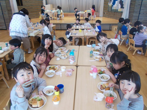 給食は年長さんのリクエストメニュー!!バイキング形式で3.4.5歳児のお友だちみんなで一緒に食べました☆