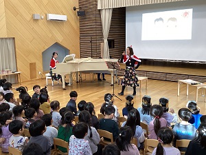 はみんぐ♪さんをお招きしクリスマスコンサートが行いました!クリスマスソングやアニメソングなど様々な子ども達が好きなジャンルで演奏してくださいました。知っている曲が流れると大熱唱するお友だちの姿も見られ、とても楽しい時間を過ごすことができました。はみんぐさんありがとうございました。