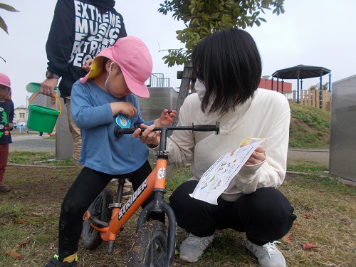 大好きな園庭で親子でネイチャーゲームを楽しみました。お家の方と一緒で笑顔いっぱいのこぐま組さんでした。