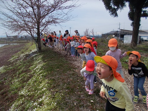 タンポポ、チューリップ、ちょうちょうなど「春」が顔を出し始めました。お友だちはお散歩中にそんな「春」をバッチリつかまえています。全身で春を感じているお友だちです!!